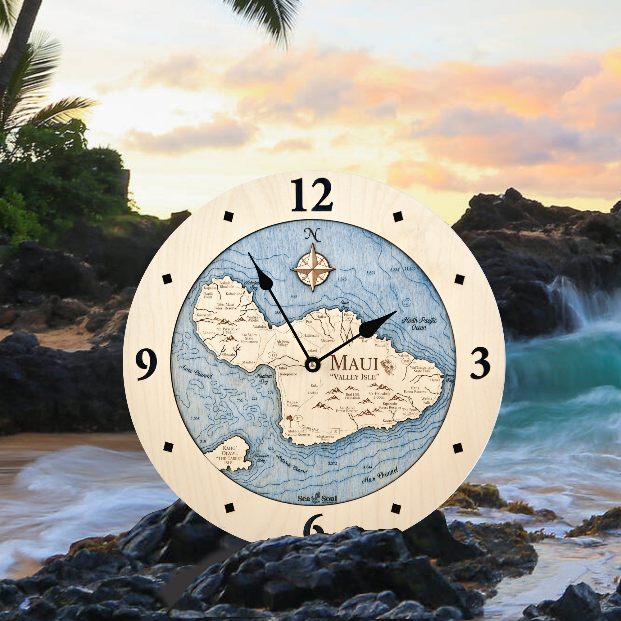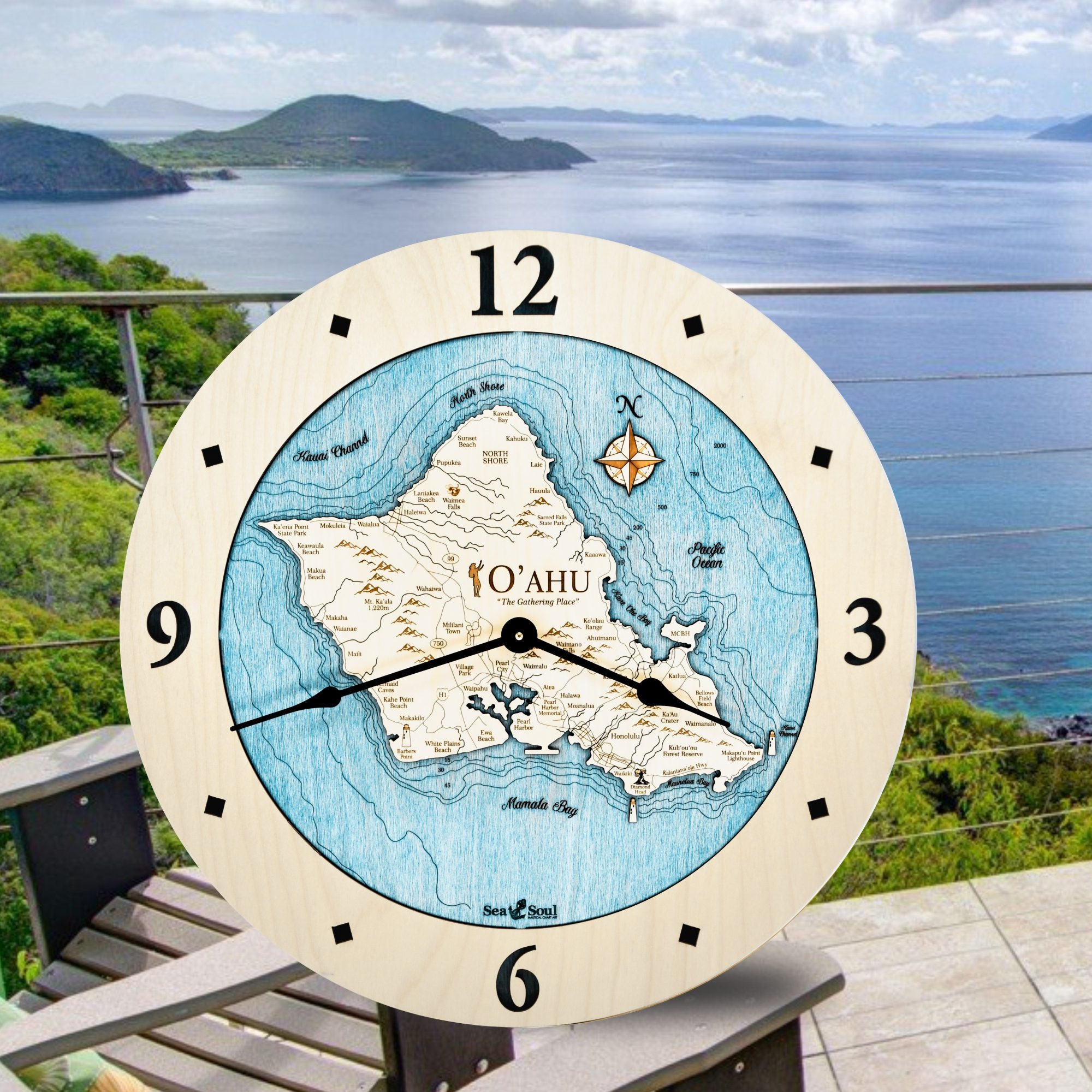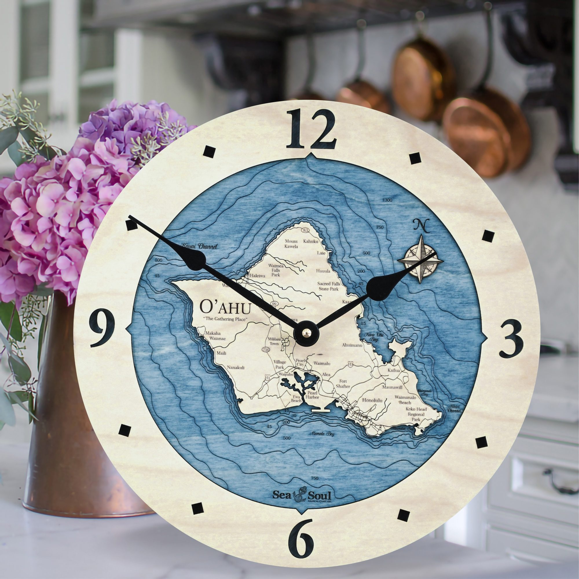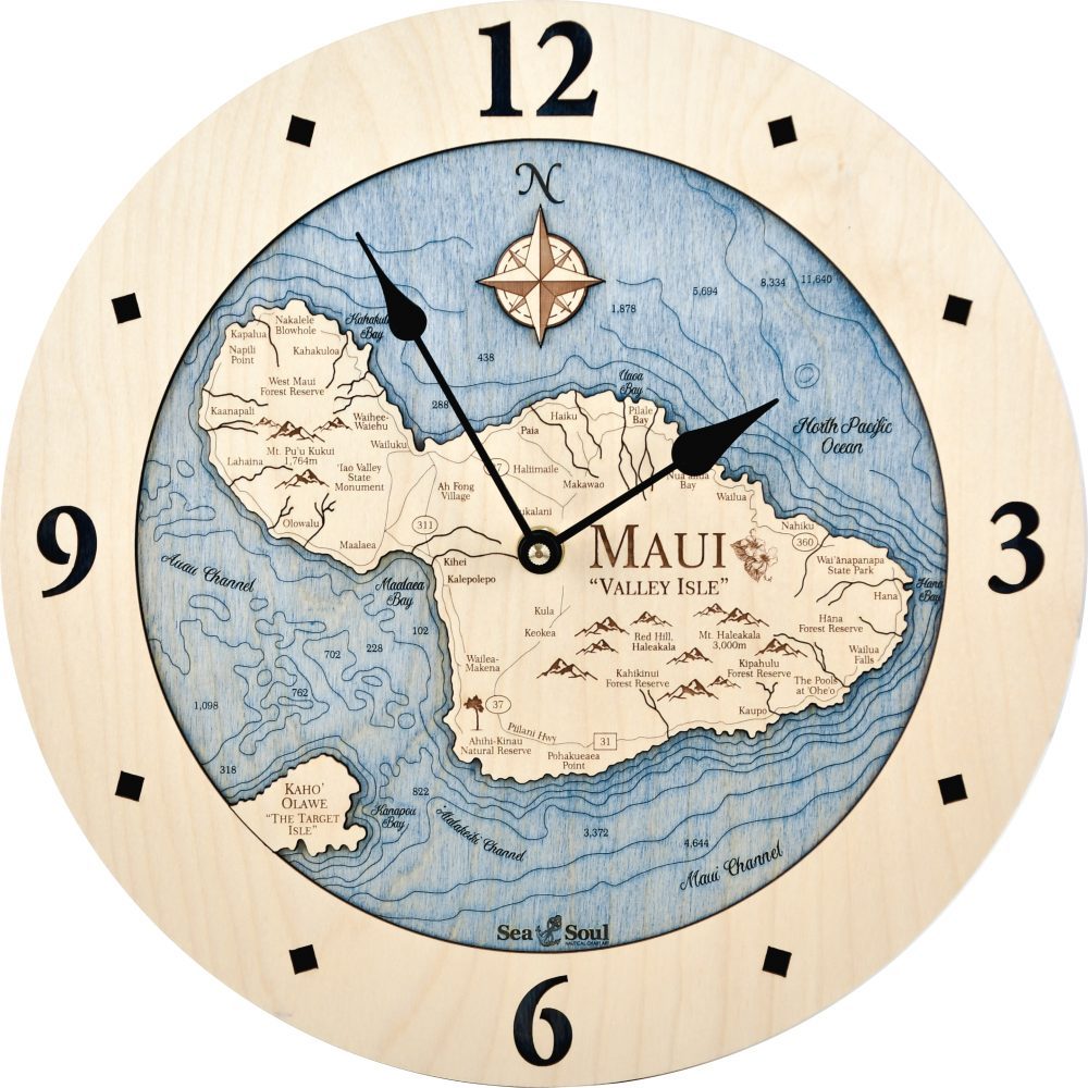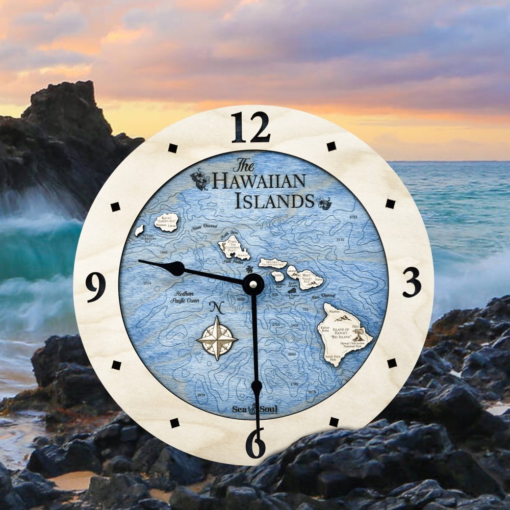 The signature look of Sea & Soul’s 12″ Hawaiian Islands Nautical Map Clocks are produced as a result of a creative use of new technology combined with time-honored techniques. Above all, it is our intention that our products become a family keepsake. So we create them that way – one at a time, the way it used to be.