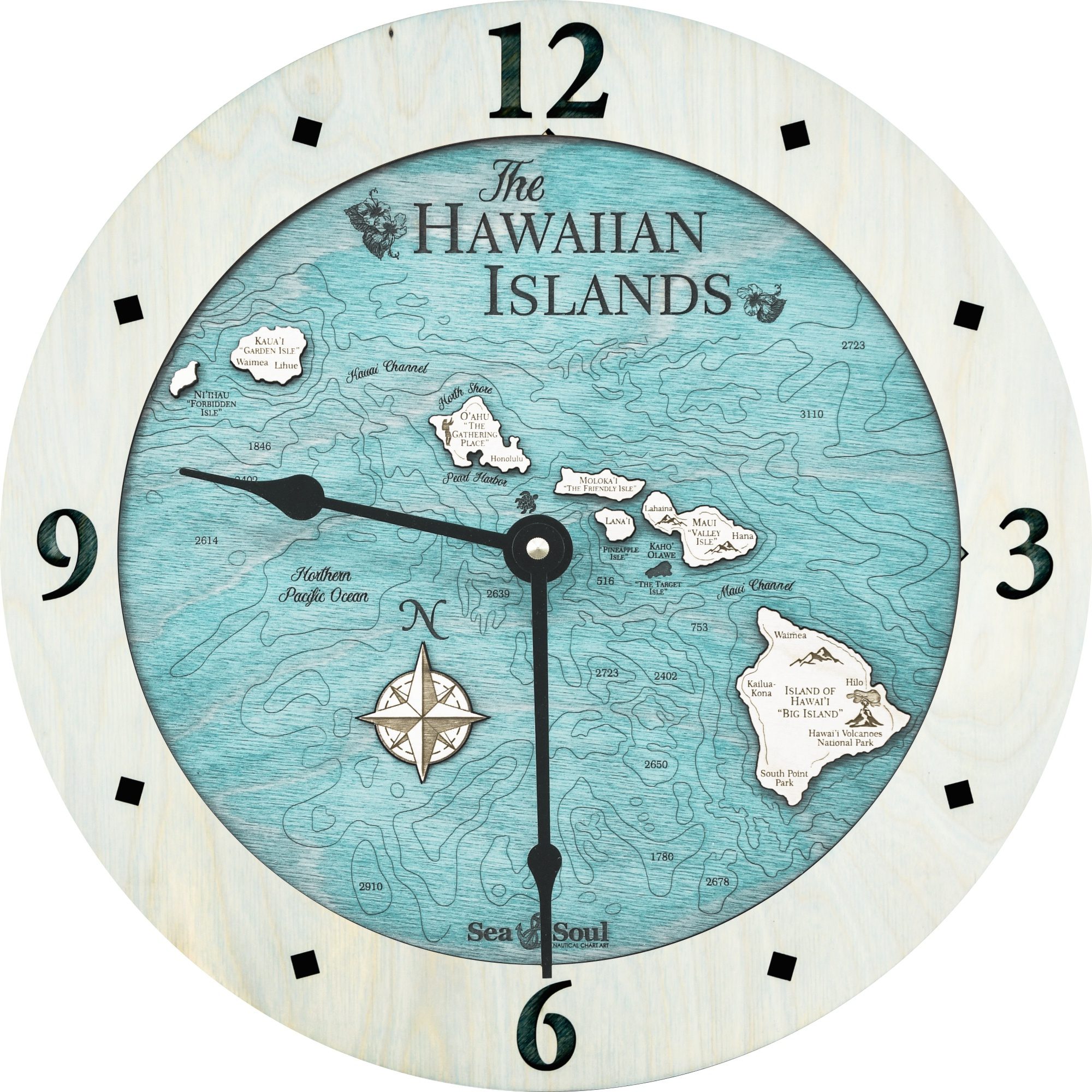 36″ HAWAIIAN ISLANDS NAUTICAL MAP CLOCK