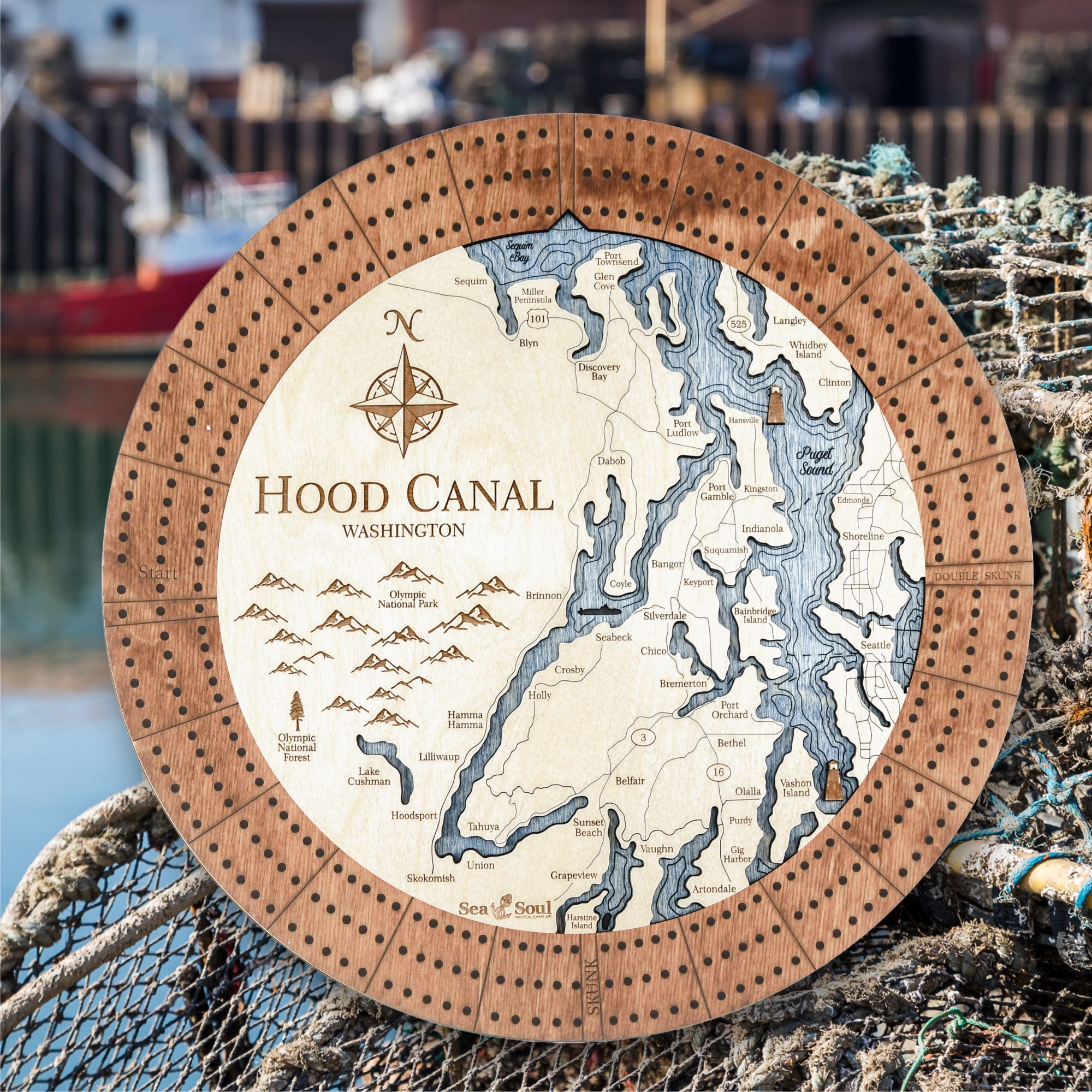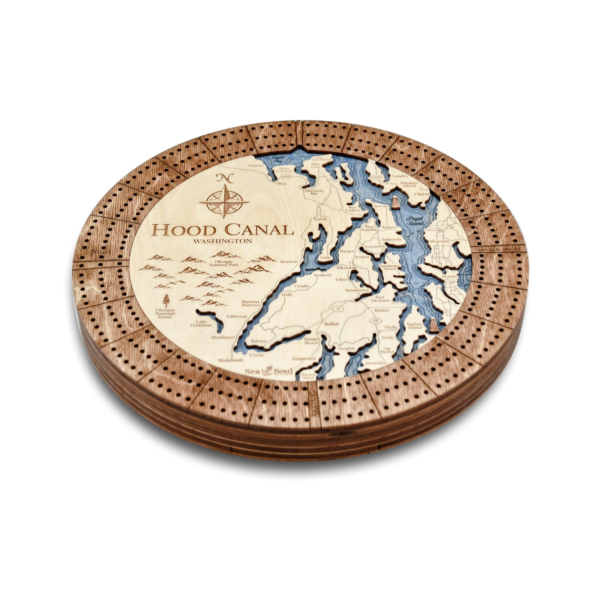 - INTRICATE LASER PRECISION: Each Hood Canal Custom Cribbage Board is laser cut and engraved in beautiful detail. Our wood workers then hand stain and assemble each chart with the water depicting the depth contours, one level below the shoreline.