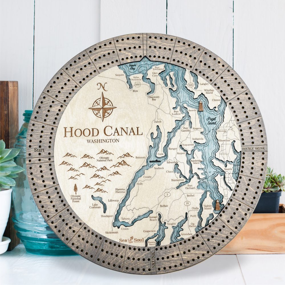 - BEAUTIFUL COASTAL DÉCOR: Beautiful Hood Canal Custom Cribbage Board are the perfect complement to any coastal cottage or lake house décor. Our custom cribbage boards are offered in 5 different accent options and two water colors to fit every coastal style!